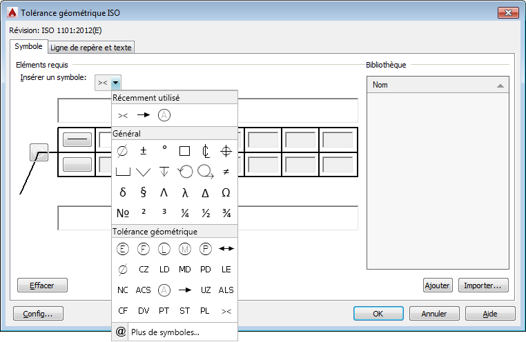 Les tolérancements géométriques prennent désormais en charge l'utilisation de symboles supplémentaires selon la révision 2012 de la norme ISO 1101.