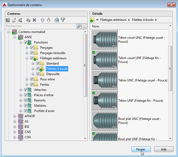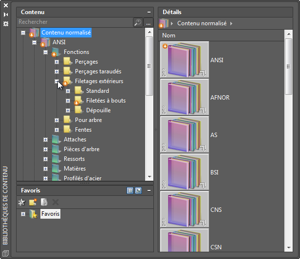 Parfois, en raison d'une mise à jour de la bibliothèque de contenu, l'apparence d'une pièce ou d'un objet normalisé existant dans une bibliothèque de contenu peut changer. Cela se produit généralement si la mise à jour du contenu corrige une défaillance. Si vous avez déjà inséré la pièce ou l'objet normalisé défaillant dans un fichier de dessin, vous pouvez le mettre à jour en cliquant deux fois dessus dans la zone de dessin.