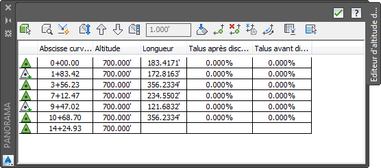 Figure 1 : Editeur d'altitudes, affichant deux points de segmentation