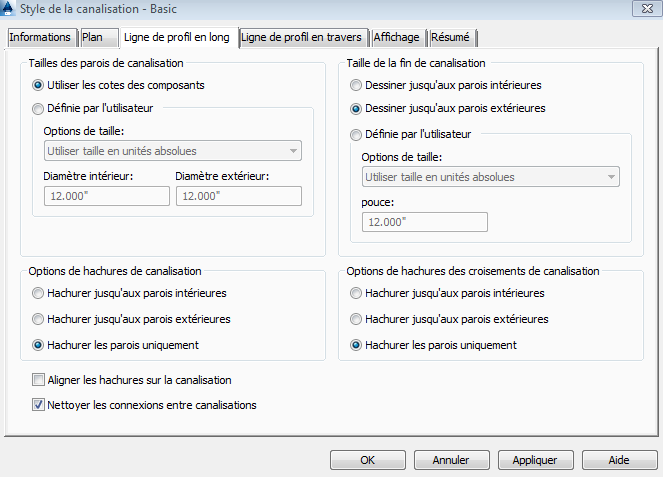 L'option Nettoyer les connexions entre canalisations de la boîte de dialogue Style de la canalisation permet d'améliorer l'apparence des lignes de profil en long de canalisation et de refléter l'alignement des canalisations à l'écran, comme illustré dans la figure 4. Cette option n'est pas activée par défaut, vous devez donc la sélectionner.