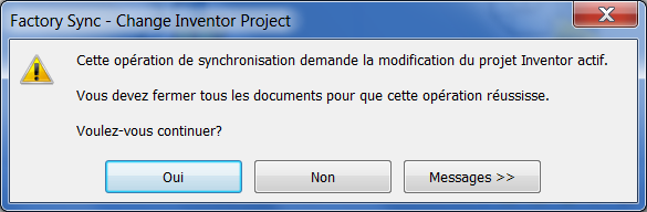 Lors de la synchronisation d'AutoCAD avec Inventor, le fichier projet associé au fichier DWG est utilisé pour définir le fichier projet courant dans Inventor.