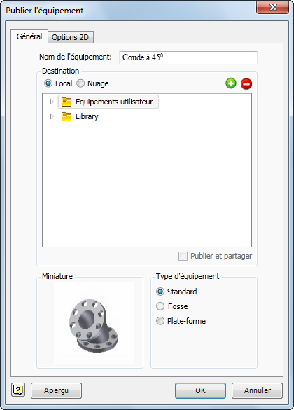 Publier l'équipement pour afficher la boîte de dialogue Publier l'équipement.