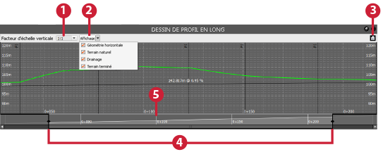 - Contrôlez le rapport selon lequel la grille Dessin de profil en long est exagérée verticalement.