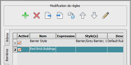pour créer une règle de style. Lorsque vous y êtes invité, entrez un nom pour cette règle de style (par exemple, "Bâtiments en briques rouges"). Après avoir cliqué sur OK, ce nom s'affiche dans la fenêtre de modification de règles.