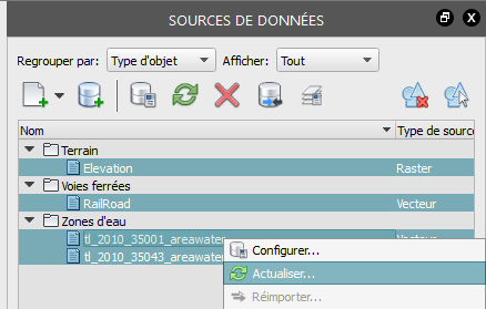 - Actualisez les sources de données sélectionnées dans le menu contextuel.