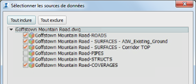 - Activez uniquement la conception de routes que vous souhaitez importer à partir de Civil 3D.