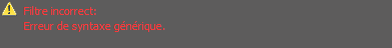 Ce problème peut se produire si vous utilisez un opérateur nécessitant une valeur numérique et que vous avez inséré un caractère de texte à la place. Pour une fonction qui nécessite une valeur hexadécimale, une valeur numérique risque de provoquer une erreur. Pour une fonction qui nécessite une propriété numérique, une propriété de texte provoque une erreur. |