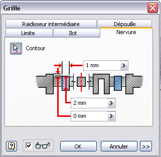 - Sélectionnez l'onglet Nervure, puis sélectionnez toute la géométrie de ligne restante pour satisfaire à la sélection de la nervure. Validez la taille par défaut.