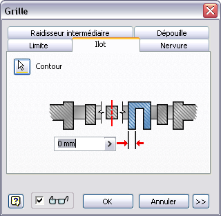 - Sélectionnez l'onglet Ilot, puis sélectionnez le centre de l'ellipse pour satisfaire à la sélection de contour. Acceptez la valeur par défaut de 0 mm.