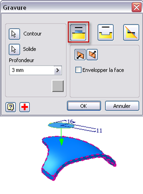 - Sélectionnez l'option Graver en relief à partir de la face.