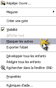 Le menu contextuel contient également la commande Afficher tout pour afficher tous les corps.