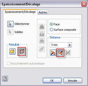 Dans l'onglet Modèle 3D, le groupe de fonctions Surface, lancez la commande Epaississement/Décalage.