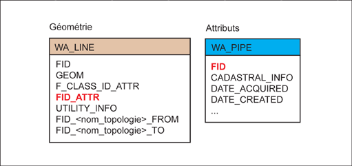 Les données de géométrie et les attributs étant stockés séparément, une classe d'objets de géométrie (point, par exemple) peut représenter plusieurs classes d'objets attribut, telles qu'armature, émetteur et raccord. Pour les objets ligne, deux méthodes de séparation sont possibles : avec attribut unique ou avec plusieurs attributs.