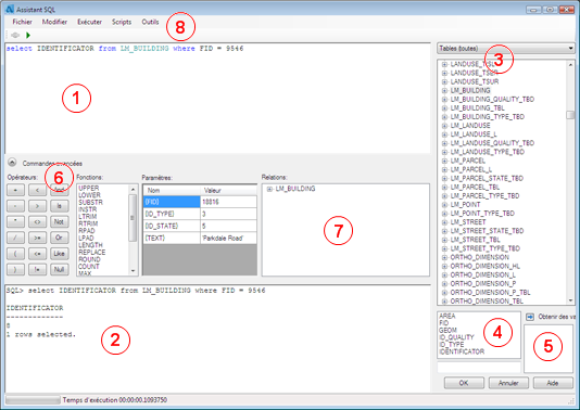 Affiche l'instruction de sélection. Utilisez les commandes ou tapez directement pour éditer l'instruction de sélection. Cliquez sur File Cliquez sur File |