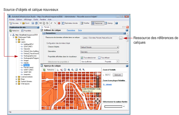 Autodesk Infrastructure Studio crée une source d'objets et un calque pour chaque fichier SHP.