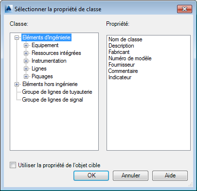 Affiche la liste des propriétés en fonction de la classe sélectionnée.