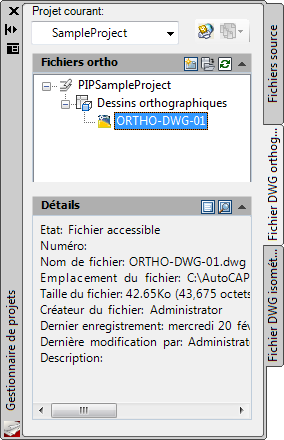Dans le Gestionnaire de projets, cliquez sur l'onglet Fichier DWG orthographique.