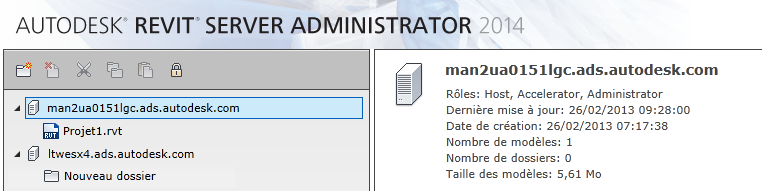 Utilisez Revit Server Administrator pour gérer les dossiers et les modèles centraux sur les serveurs Revit Server Host et pour verrouiller des modèles afin d'effectuer des tâches d'administration.