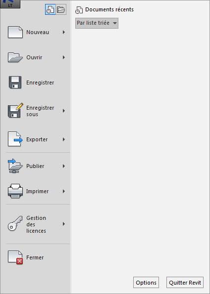 Dans le menu de l'application, cliquez sur le bouton Documents récents pour afficher une liste des fichiers récemment ouverts. Utilisez la liste déroulante pour changer l'ordre de tri des documents récents. Utilisez les punaises pour conserver des documents dans la liste, quelle que soit la date à laquelle ils ont été ouverts.