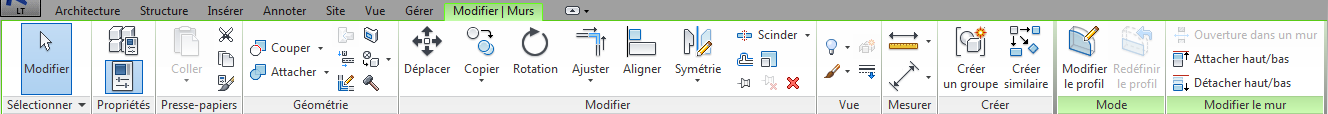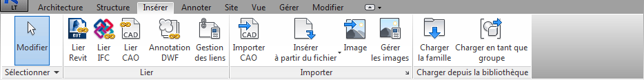 Le ruban s'affiche dès que vous créez ou ouvrez un fichier. Il contient tous les outils nécessaires à la création d'un projet ou d'une famille.