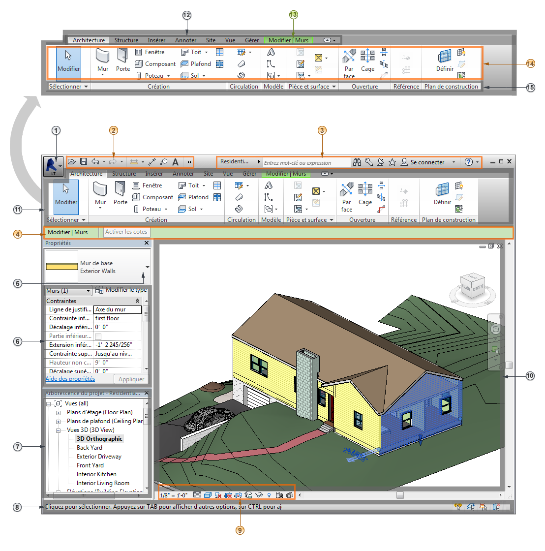 | 13 | Onglet contextuel du ruban fournissant des outils relatifs à l'objet sélectionné ou à l'action en cours |
