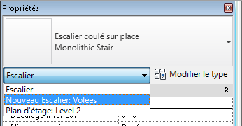 - Dans le Sélecteur de type, sélectionnez le type de l'escalier à créer. Vous pouvez modifier le type ultérieurement, si nécessaire.