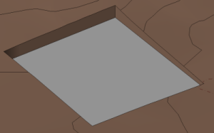 La figure suivante présente la vue 3D d'un terre-plein sur une surface topographique nivelée.