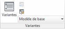 groupe de fonctions Variantes. La liste déroulante indique la variante en cours de modification. Les modifications effectuées affectent la variante active.