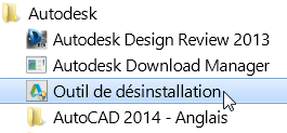 Pour désinstaller plusieurs produits ou une suite entière, il est recommandé d'utiliser l'outil de désinstallation Autodesk, que vous pouvez lancer à partir de la liste des produits sur votre ordinateur.