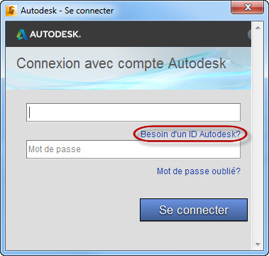 - Si vous ne disposez pas d'ID Autodesk, cliquez sur Besoin d'un ID Autodesk ? dans la boîte de dialogue Autodesk - Connexion.