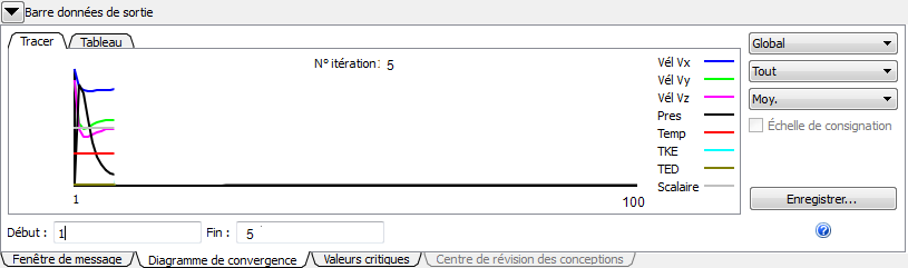 4. Une fois que l'analyse a démarré à l'issue du traitement du démarrage, la progression de la résolution est tracée sur la barre des données de sortie du Contrôle de la convergence :