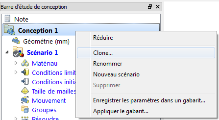 Dans cette étape, nous allons copier tous les paramètres et la géométrie dans une deuxième conception. En effet, dans l'étape qui suit, nous allons modifier la géométrie de CAO dans la deuxième conception et utiliser les paramètres de la première conception.