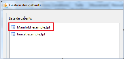 À partir de la liste Gabarit, cliquez avec le bouton gauche de la souris sur Manifold_example.tpl.