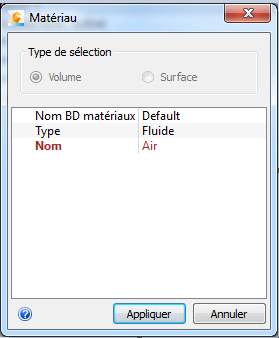 Dans la boîte de dialogue d'édition rapide de matériaux, Type = Fluide