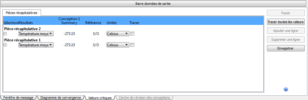 Consultez le tableau des résultats dans l'onglet Valeurs critiques de la barre de sortie.