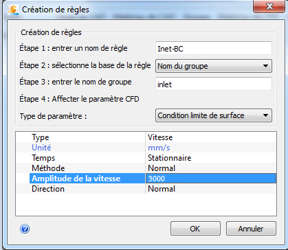 Etape 1 : Spécifiez Inlet_BC comme nom de la règle