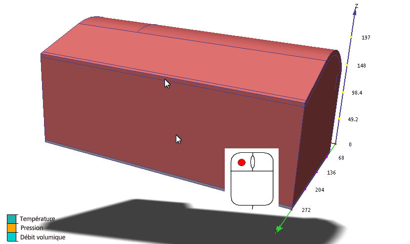 5. Faites pivoter le modèle de manière à afficher les surfaces sur la partie avant (opposée au système d'alimentation et de retour) du hall.