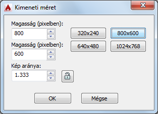 Amikor egyedi kimeneti méretet ad meg, akkor ez hozzáadódik a Renderelési beállítások paletta Kimeneti méretek listájához. Négy egyedi kimeneti méretet tárolhat a rendszer a kimeneti méret listájában, de nem menti azokat az aktuális rajzzal és nem tartja meg azokat az egyes rajzolási munkamenetek között.