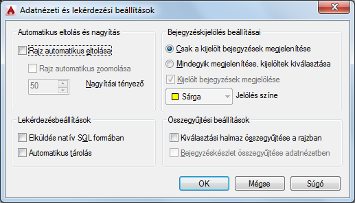 Az aktuális rajzban használt lekérdezéseket automatikusan tárolja.