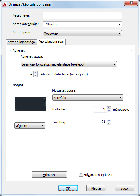 Azt adja meg, hogy egy nézetnek a ShowMotion funkcióval történő lejátszásakor a program milyen átmenetet és mozgást használjon.