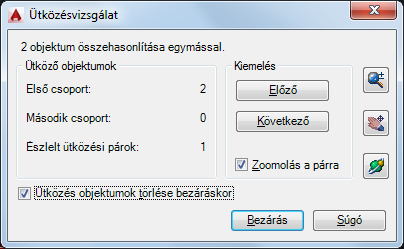 Megjeleníti a kijelölt objektumok között talált ütközések számát.