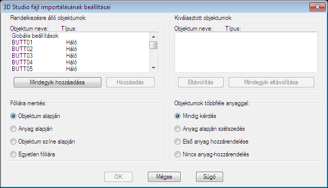 A 3D Studio-fájl összes objektumához készít egy-egy fóliát, és az objektumot arra helyezi. A fólia neve megegyezik az objektum nevével.