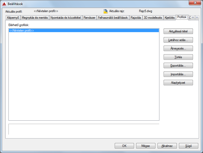 Vezérli a profilok használatát. A profil egy felhasználó által megadott konfiguráció.