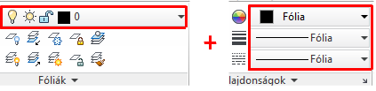 A szalag Kezdőlapjának Fóliák és Tulajdonságok paneljén ellenőrizheti és módosíthatja a leggyakrabban használt tulajdonságok, a szín, a fólia, a vonalvastagság és a vonaltípus beállításait.