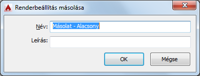 Adjon nevet a másolt renderbeállításának. Az alapbeállítások nevének egyedieknek kell lenniük.