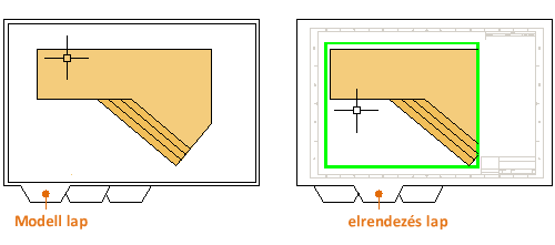 Fontos: Ha a papírtér és a modelltér között szeretne váltani, kattintson duplán az elrendezési nézetablakon belül, illetve azon kívül.