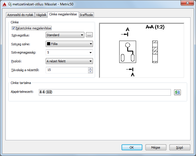 - A metszetinézet-címke elhelyezését adja meg a metszeti nézethez képest.