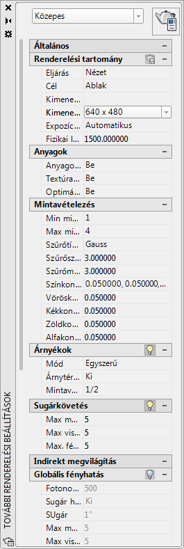 A renderelés minden elsődleges beállítását szabályozza, beleértve az előre definiált és egyéni beállításokat is.
