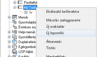 Egy új eszköztár (Eszköztár1 néven) jön létre, és az eszköztárra hivatkozó új leporelló a kiválasztott eszköztár aljára kerül.