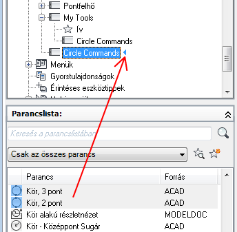 A Parancslista területről húzza a hozzáadni kívánt parancsot a <fájlnév> testreszabási beállításai területen lévő eszköztár-leporellóhoz.